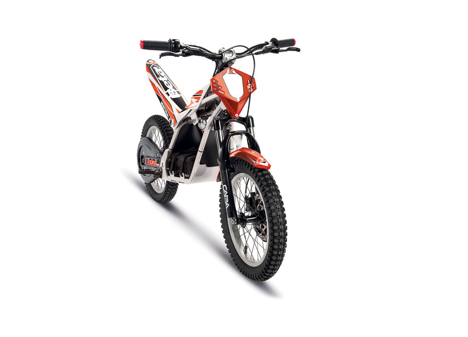 A three-position power switch (Slow / Medium / Fast) lets the bike grow with the rider, and in Slow/Trial mode it delivers roughly two hours of run time—perfect for practice sessions and riding with family.